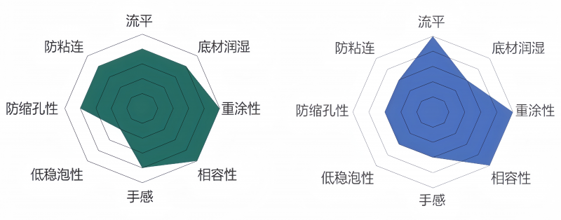 泰格助剂Tech-27305核心价值在于实现了高性能与应用安全性的平衡。性能表现上,它在多种树脂体系(2K PU、UV、环氧等)中均展现出卓越的相容性、低稳泡性和突出的防缩孔能力。流平效果与国际标杆产品无异。