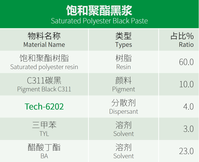 聚酯黑浆需要在高温固化条件保持小粒径、高黑度、高光泽度和对粉体的润湿,其防浮色性能也是重点考察范围之一,对于要求较高的卷材涂料,泰格助剂Tech-6202超分散剂是一个很好的选择。