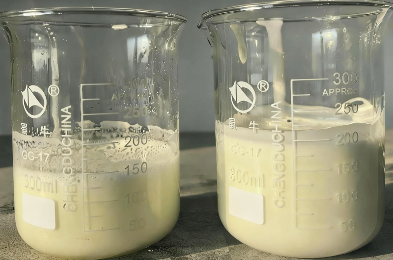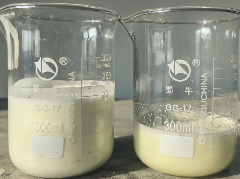 左:常规非硅消泡剂 右:泰格破泡有机硅A